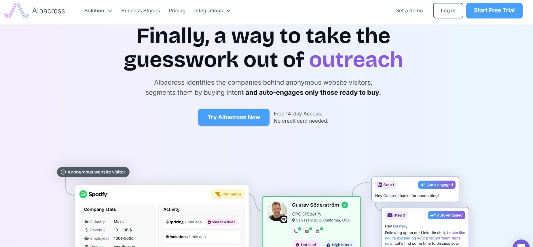 | Albacross | Affordable visitor ID | Yes (company-level) | Yes (basic email) | Limited | Budget-conscious SMB | €84/month |