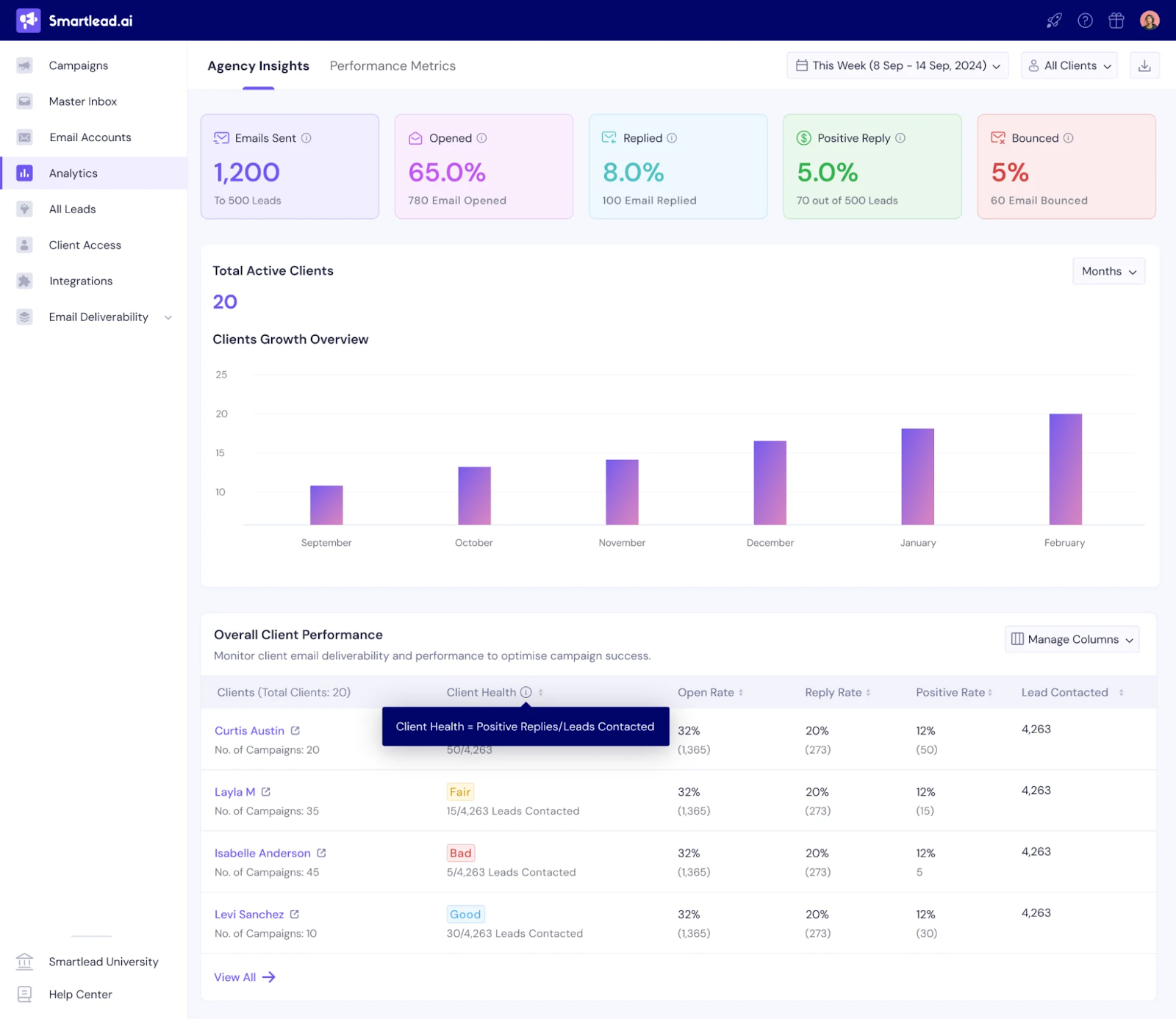 4. By establishing a positive sender reputation and gradually increasing the number of sent emails, Smartlead minimizes the risk of your emails being flagged as spam. This way, you can be confident that your messages will consistently land in the primary inbox, increasing the likelihood of engagement and successful communication with your recipients.