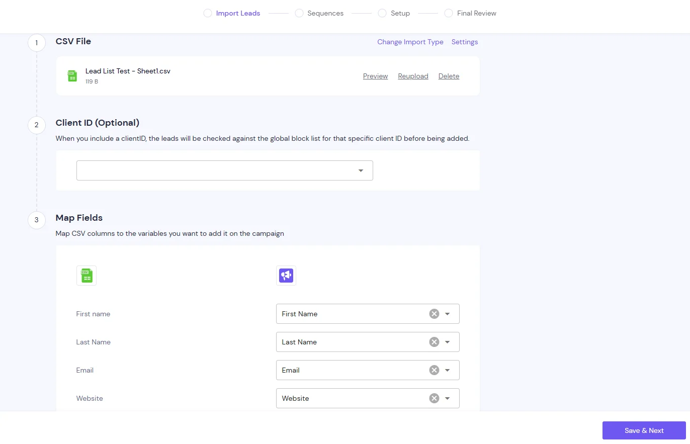 Create a campaign in Smartlead and map your lead data
