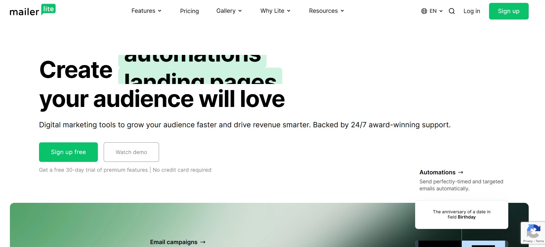 MailerLite is user-friendly and budget-friendly, ideal for agencies starting out or managing simpler campaigns. AI assists with subject line generation and send-time optimization. Auto-segmentation, visual workflow builder, and unlimited monthly emails on higher plans make it a popular choice.