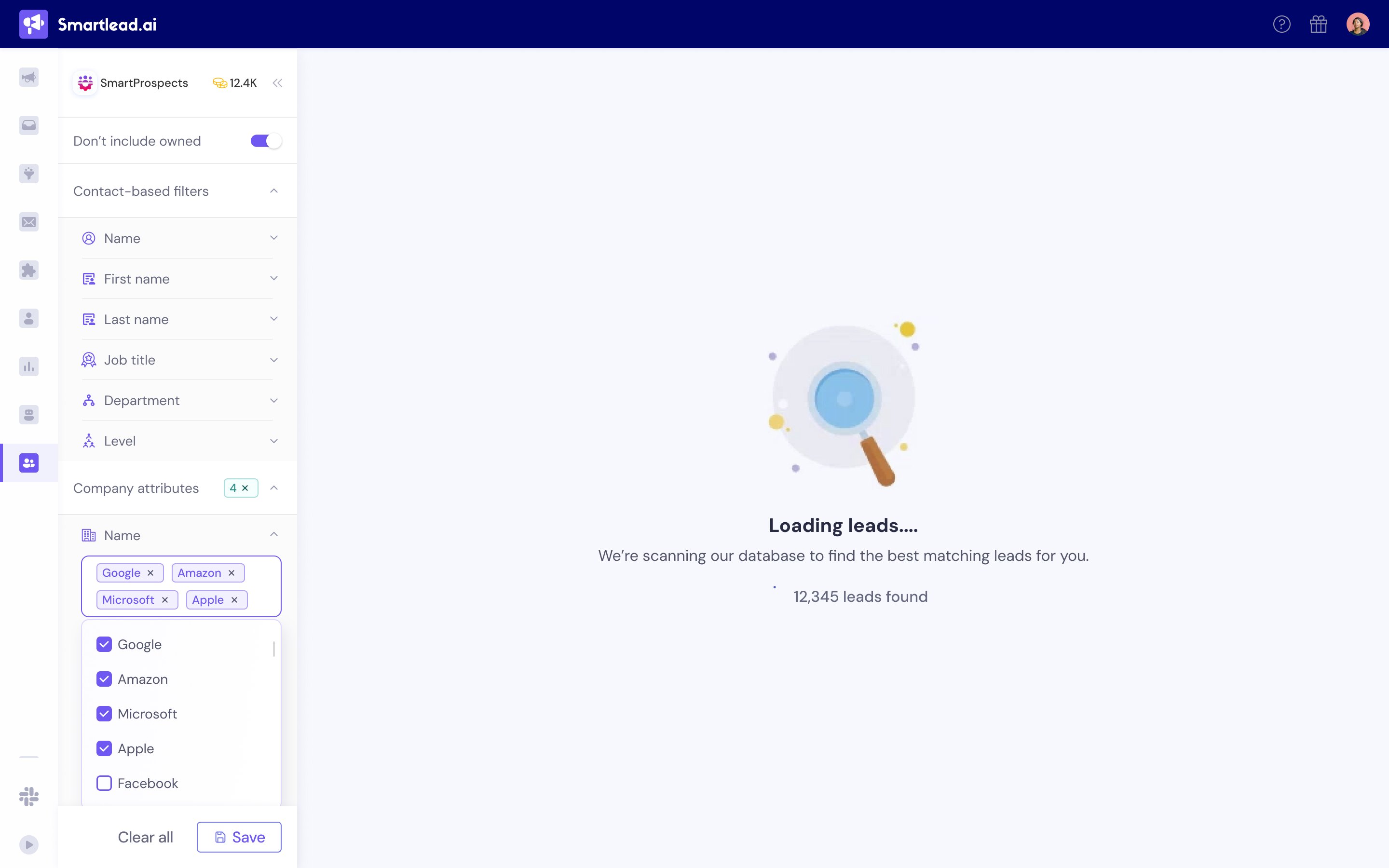 Once your filters are set, SmartProspect’s AI scans millions of verified profiles to find your best matches. Each result is cross-checked against Smartlead’s internal data pool to ensure freshness and accuracy.