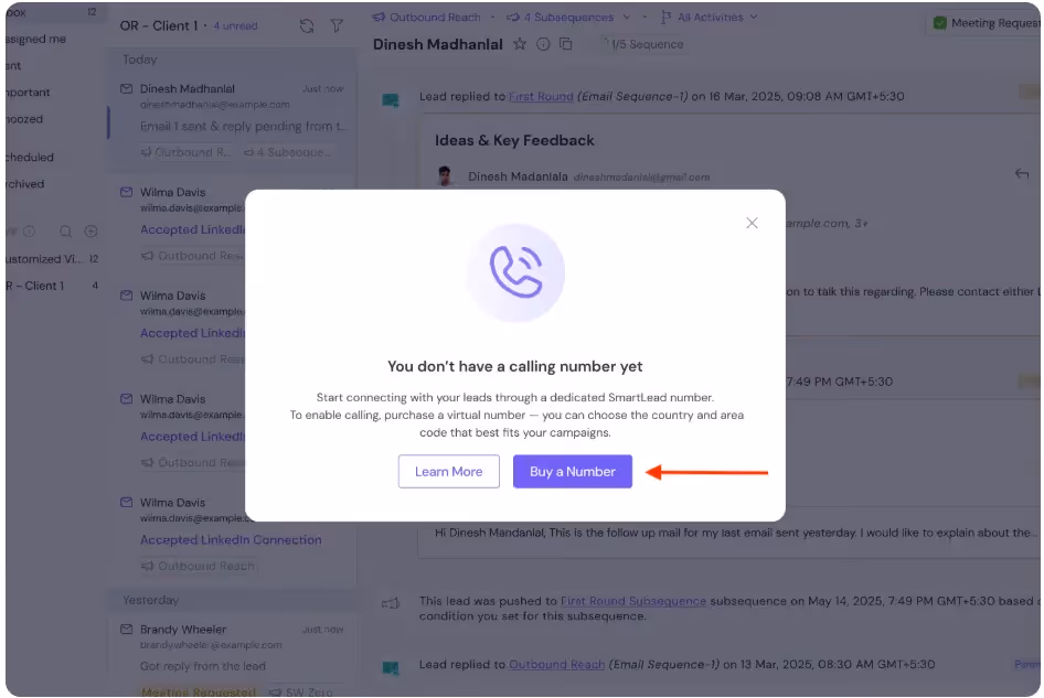 SmartDialer starts at $9/month inside Smartlead. Includes intent-triggered call activation, full sequence context before every dial, call recording, AI transcription, and automatic CRM logging.