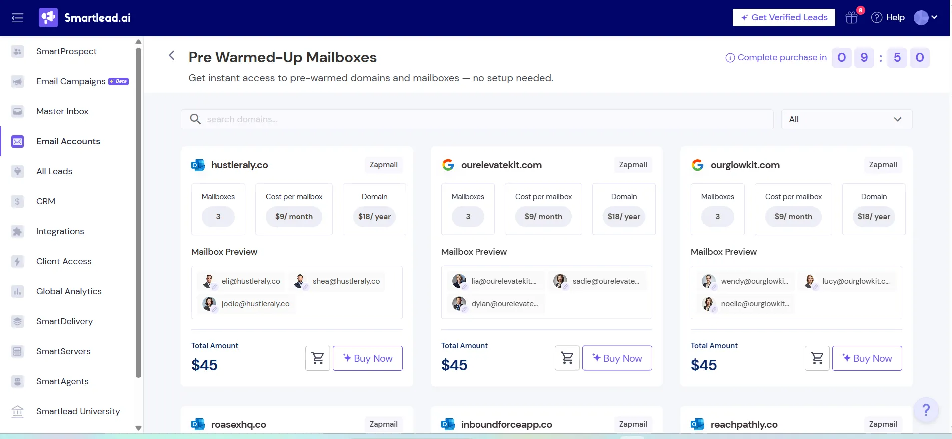 When you buy a pre-warmed mailbox from Smartlead, you can start sending the same day, no waiting period, no gradual ramp-up.