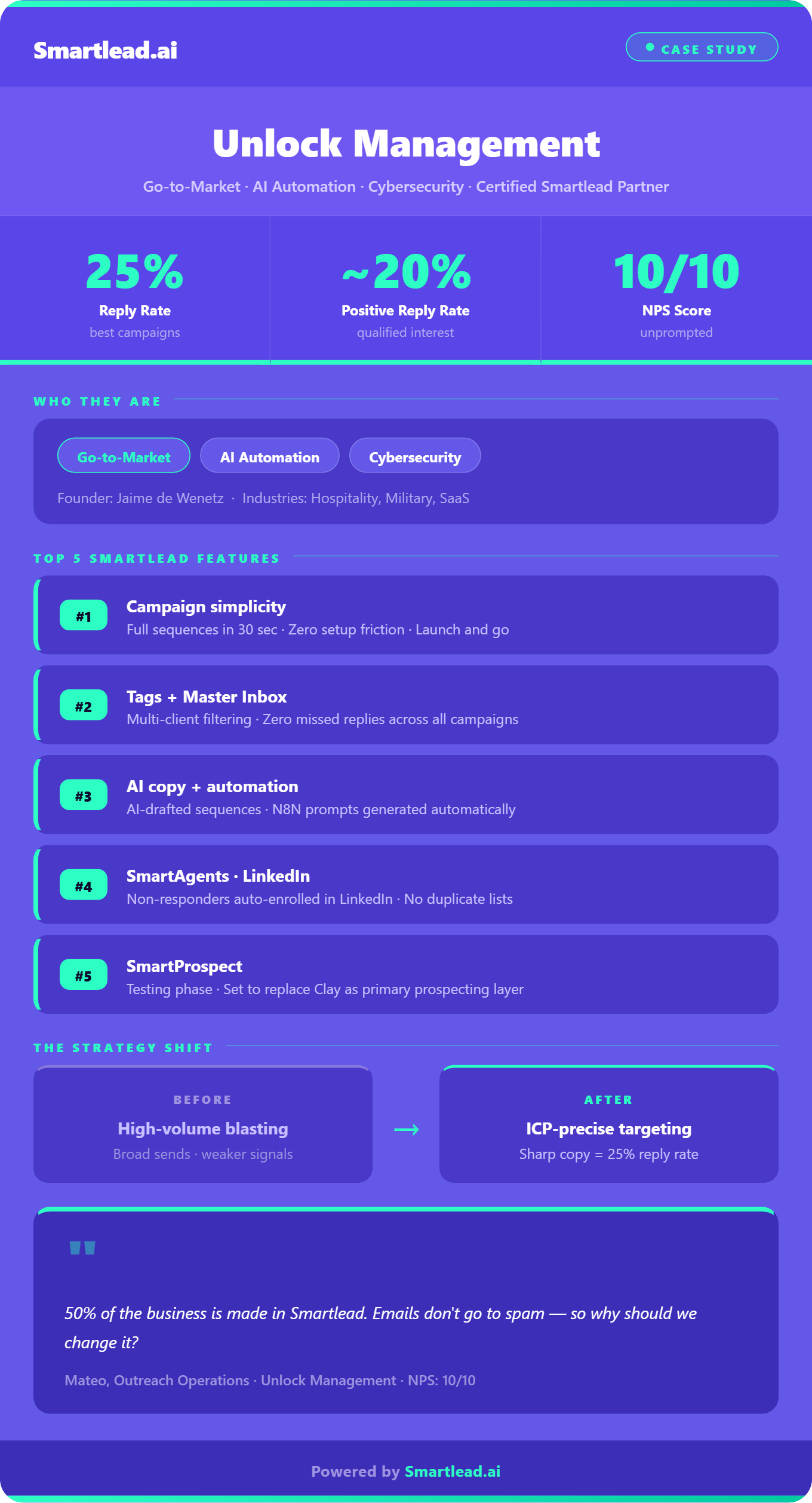 Real-time AI learning refines strategies based on performance, optimizing deliverability without manual adjustments. Smartlead's advanced features and strategies are designed to improve email deliverability rates, making it a robust choice for enhancing cold email campaign success.