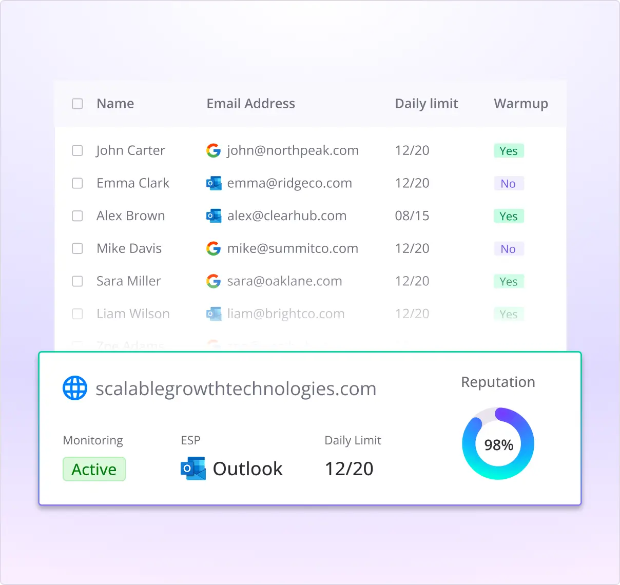 Saleshandy locks whitelabeling behind Outreach Scale at $149/mo annual. Smartlead unlocks it on the Pro plan at $94/mo, with one client included free. For agencies building their first branded client portal, that's over $650 back in your budget each year.