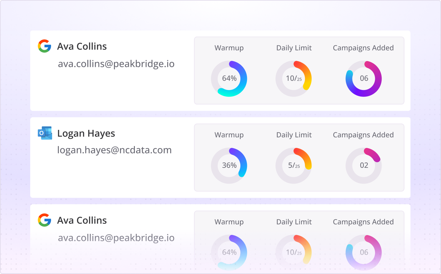 Spin up as many sending accounts as you need and manage them all from a single interface—perfect for agencies or growing teams.