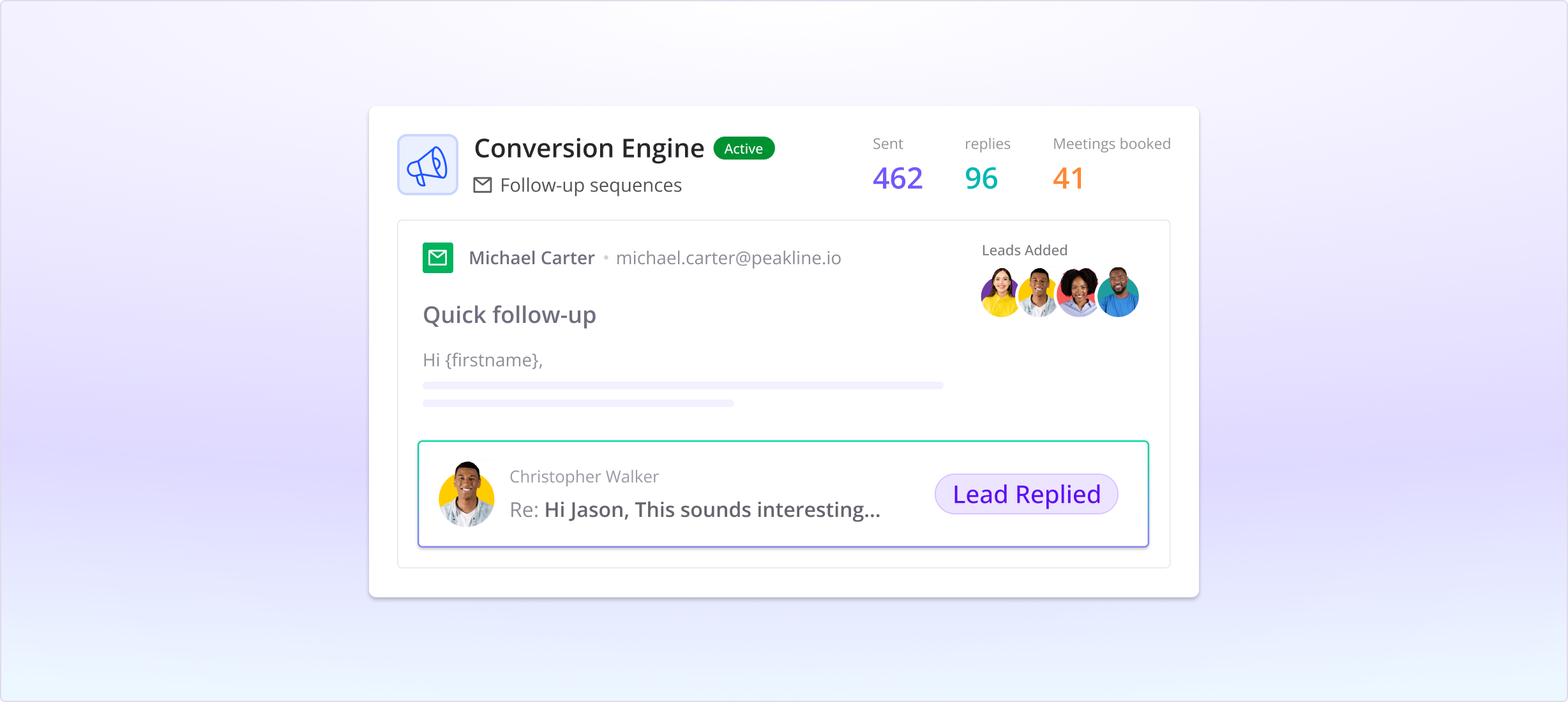 As soon as a call ends, SmartDialer can schedule follow-up emails, tasks, and reminders automatically. Notes, dispositions, and next steps sync directly to Smartlead’s CRM or connected platforms - eliminating manual data entry.