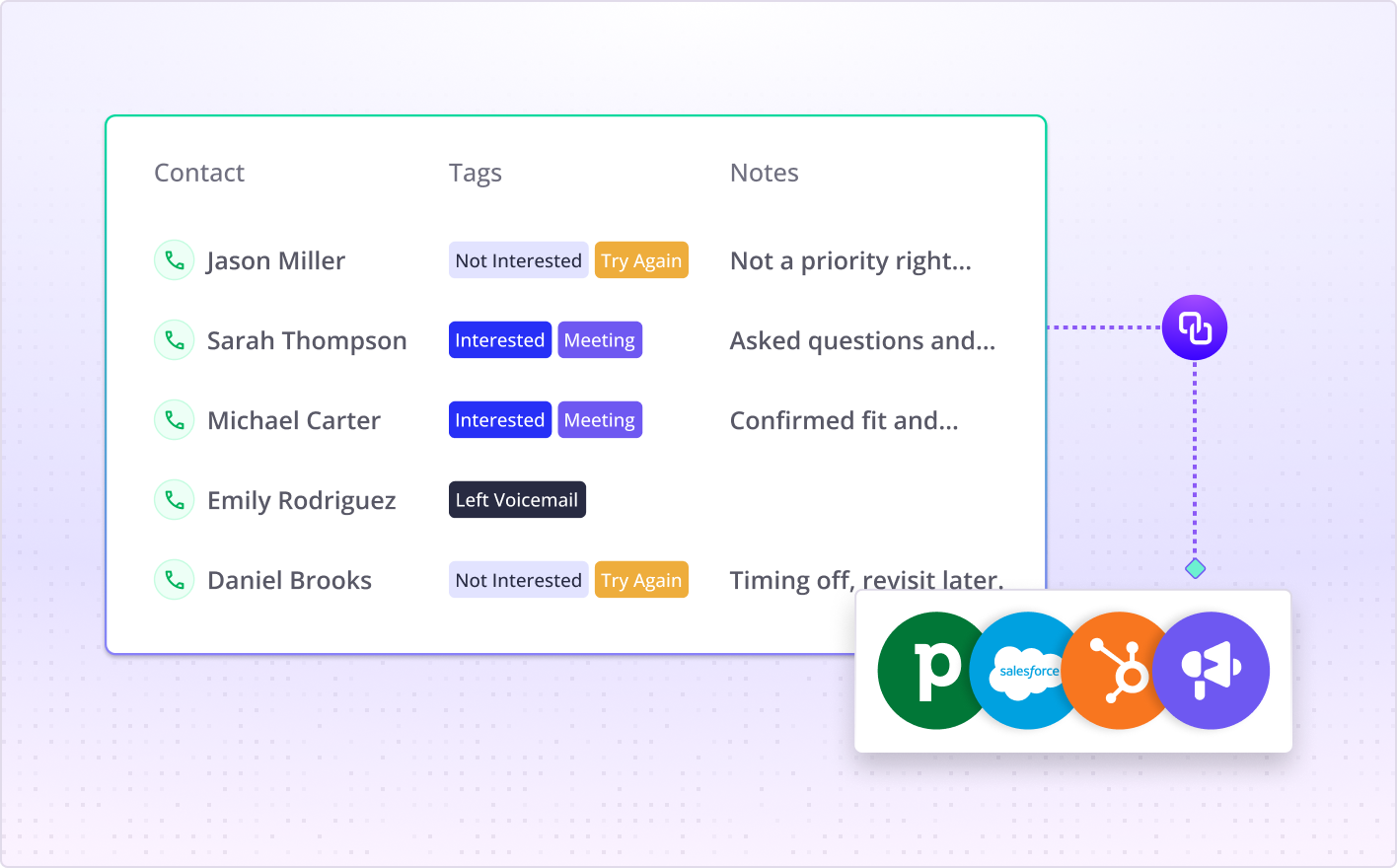 See call history, transcripts, notes and lead status in a single place—no bouncing between apps